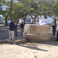 installiert. Gefördert wird das Brunnenwasser in zwei Wassertanks mit insgesamt 10.000 Litern Inhalt. Aus sieben Entnahmestellen und zwei zusätzlichen Wassertanks bei den Schülertoiletten ist für