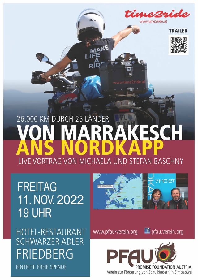 Am 11. November 2022 berichteten unsere Freunde Michaela und Stefan Baschny von ihrer Motorradreise auf 26.000 km durch 25 Länder.